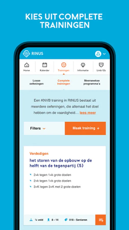 "The app is Rinus part of KNVB ASSIST, developed the knowledge platform for all (youth) trainers in the Netherlands. It contains exercises, workouts and more week programs.