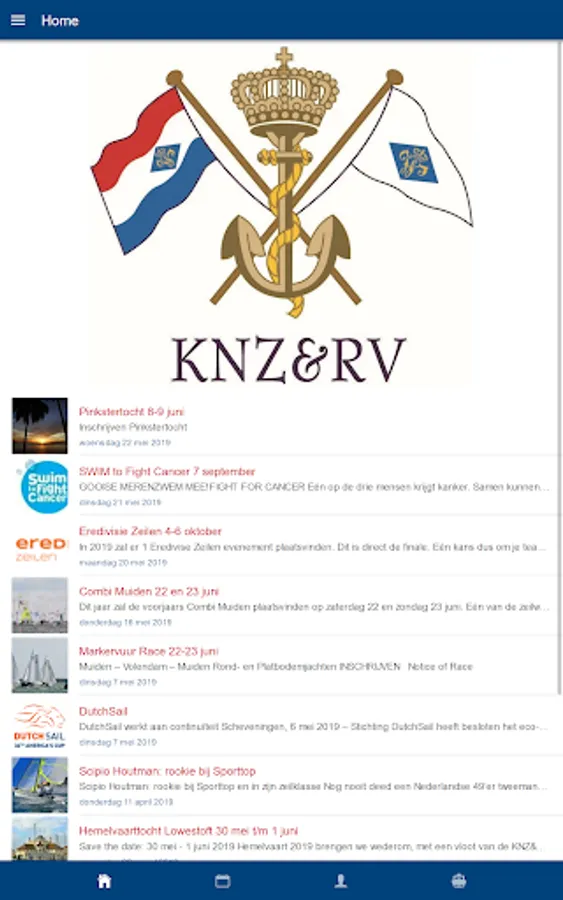 With the official app of the Royal Dutch Sailing & Rowing Association (KNZ & RV) you can quickly view the latest news, register for activities, view and change name and address details, consult my boats, download private files, view invoices and more.