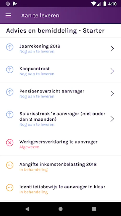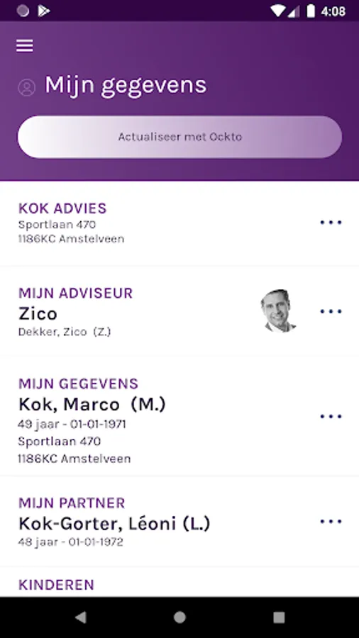 With this app you have all your financial products in one place, so you always and everywhere have insight into your mortgage, insurance and agreements with KOK Advies. You can easily pass on a change or damage report. In addition, you can deliver documents in a secure manner. This gives you optimum insight into your own financial household and your adviser is always close by. That gives financial peace!