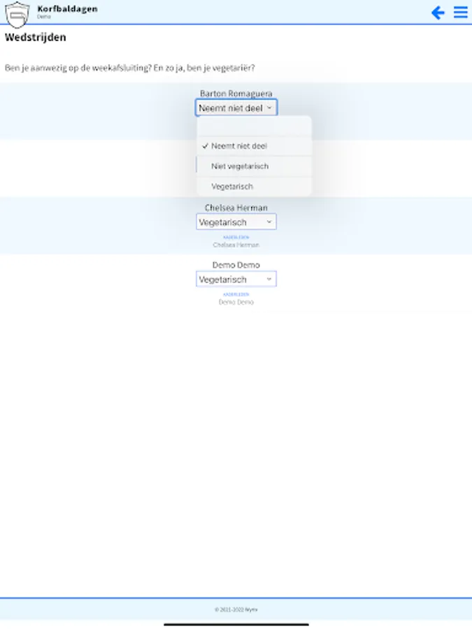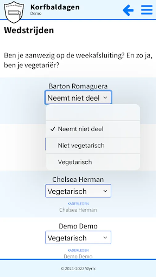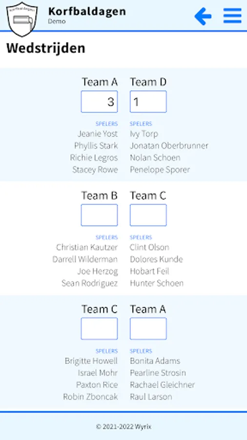 App for processing results during the korfball days.