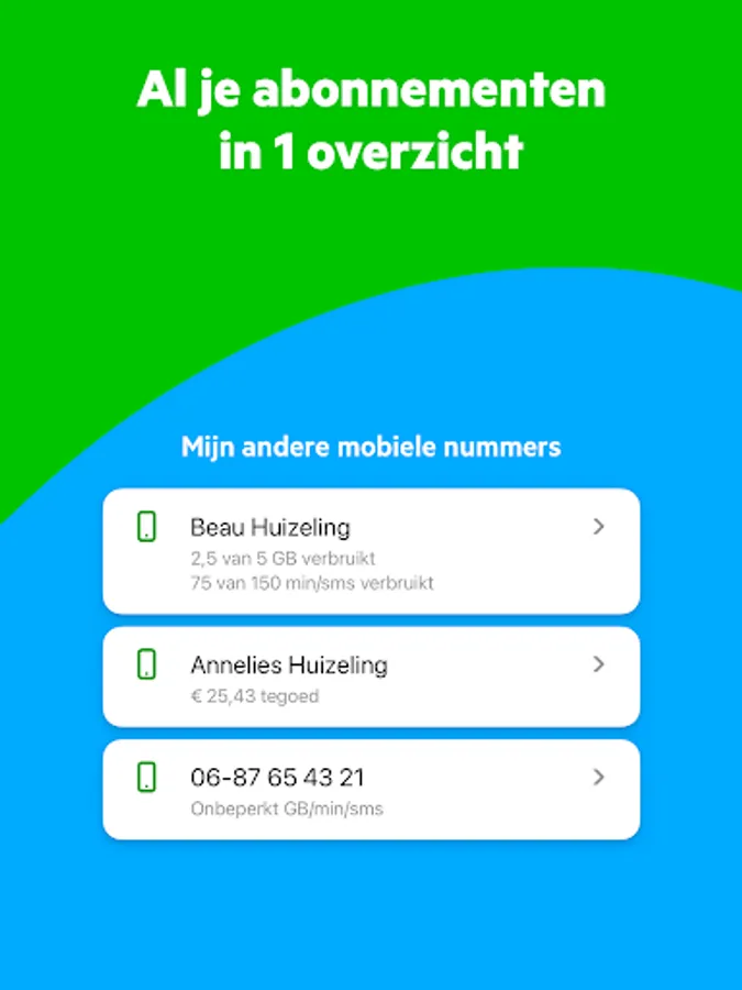 • View call, SMS and data usage of your KPN Mobile subscriptions in 1 overview