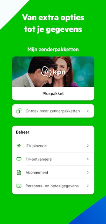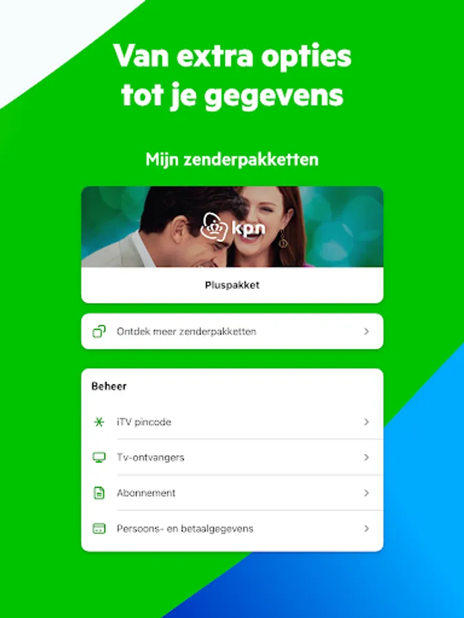 With the MijnKPN app, you have quick access to your subscriptions for Mobile, Internet, TV, and Prepaid. The MijnKPN app doesn't work for KPN business subscriptions.