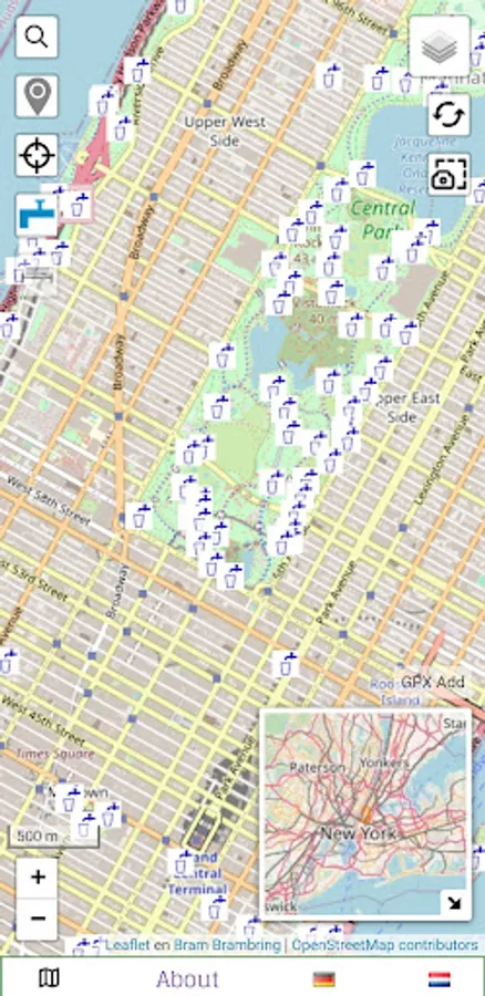 The map shows portable water taps and public drinking water taps known to openstreetmap.