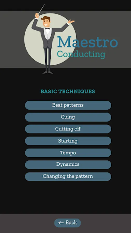 This app is for musicians who want to learn to conduct. Focus is on hands on practicing rather than the theoretics of conducting. All patterns and movements are explained using supple, instructive animations. Subjects in the app are: