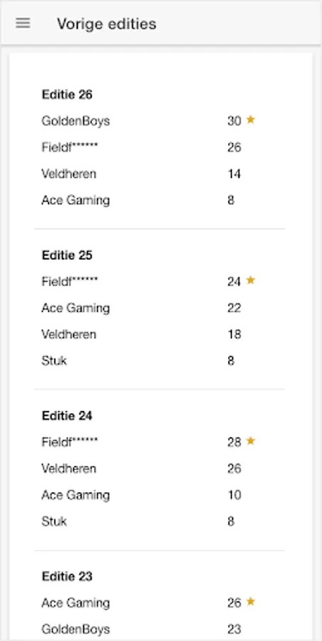 An app that can be used to view the scores of the teams that were played with lanlords and which games were played