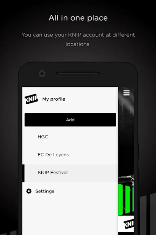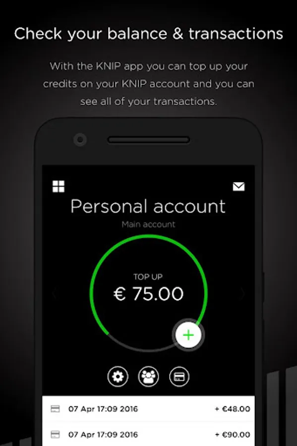 You can use the KNIP app to top up your credits online on your KNIP account and you can see all of your transactions. Moreover, you can use your KNIP account at different locations of Twelve (sports clubs, business caterers, stadiums and events). Ask the organization if you can pay with your KNIP account.