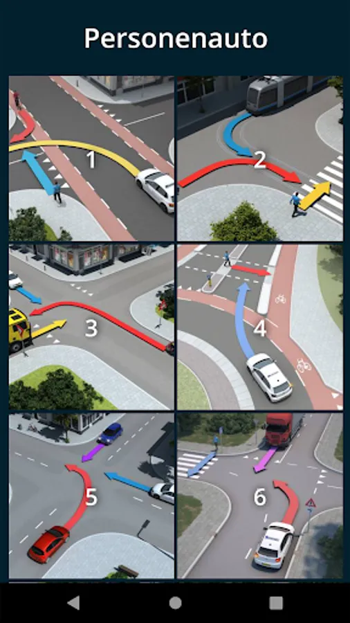With this app you practice the order of giving way in traffic. You will see questions with road users at intersections and you must indicate in which order the road users may proceed.