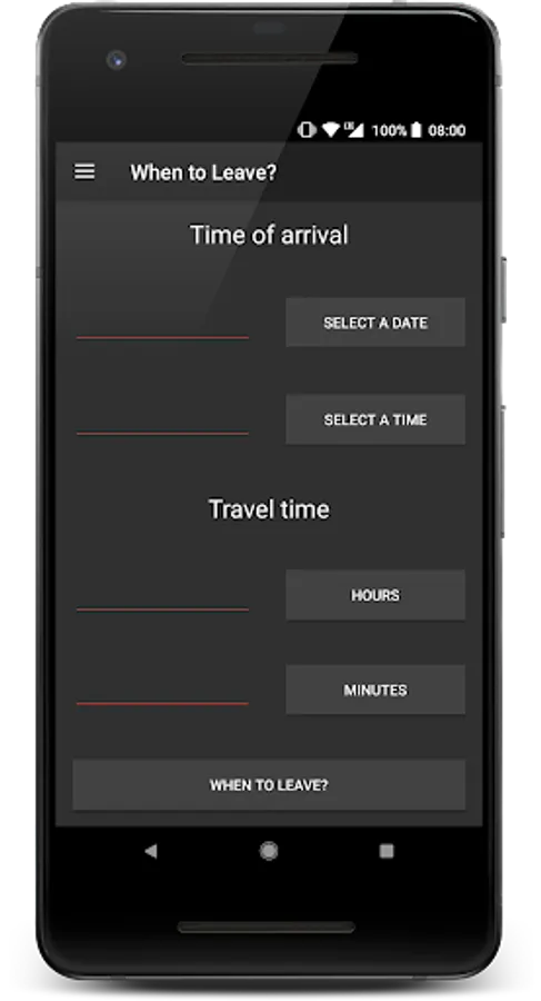 It requires you to fill in a date & time of arrival and your travel time. When to Leave? then gives back a time & date on which you need to leave in order to make it on time. You can also calculate the time it will likely take to travel a given distance, based on configurable average speeds, for walking, running and cycling.