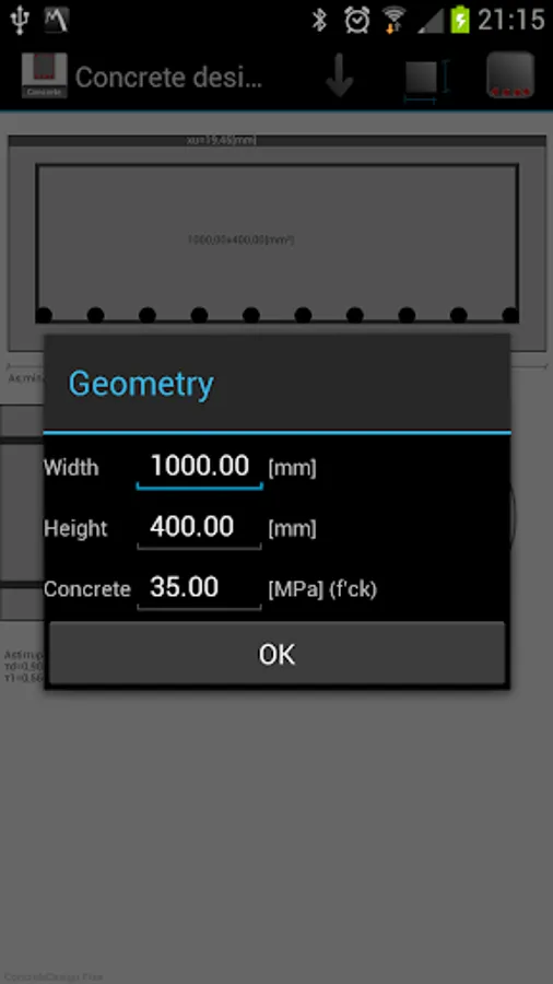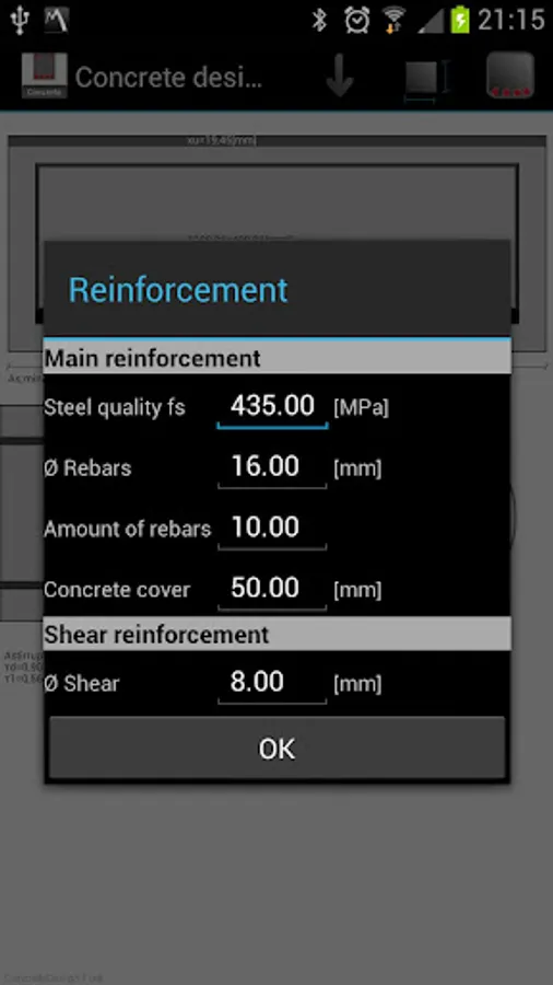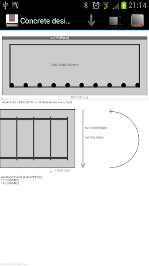 Civil engineering app to determine the amount of reinforcement in a concrete section for preliminary design.