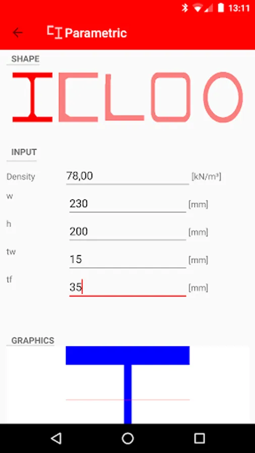 - Parametric sections (circular, rectangular, H, I, U)