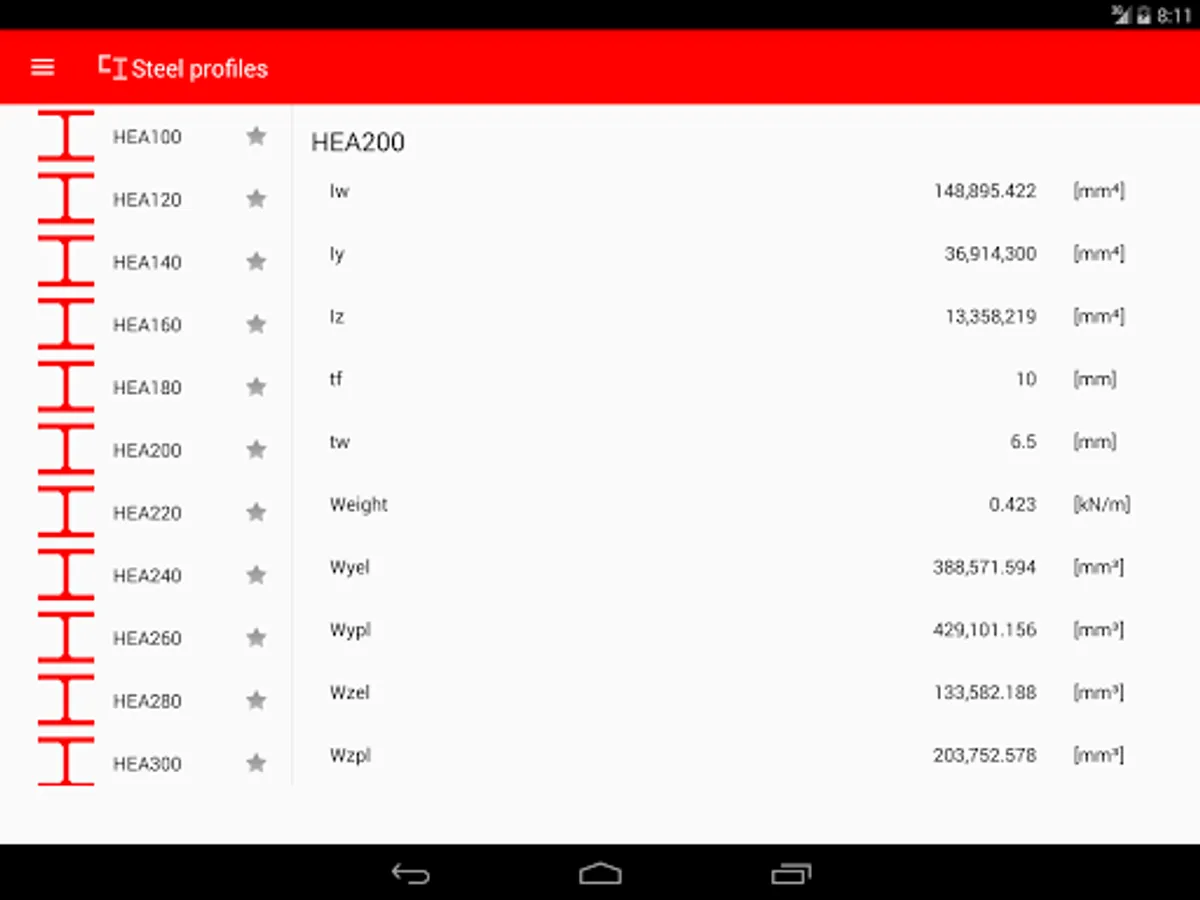 Please note that this app is also being used to select a section from our FrameDesign and BeamDesign apps.