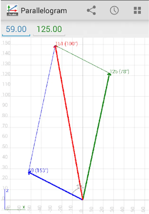 Quickly find the resultant of two forces in any direction. Very usefull for civil/mechanical engineering.