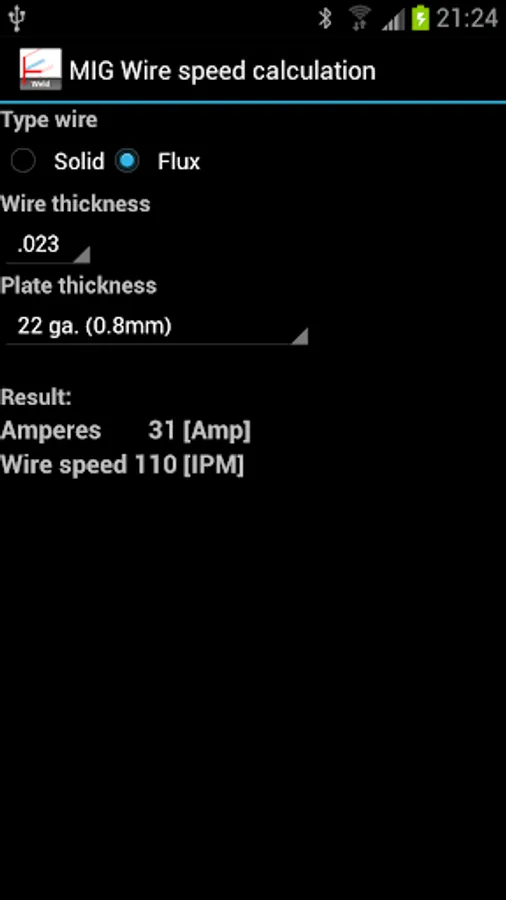 * MIG wire speed calculator