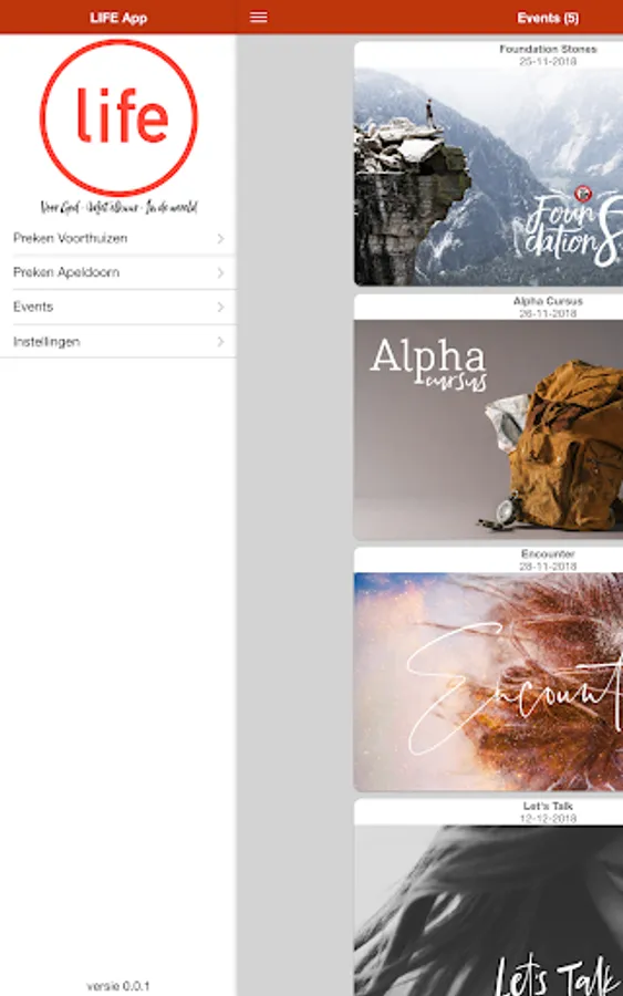 The app of Christianity LIFE to listen to the sermons, to have an overview of the upcoming events and who our home group leaders are.