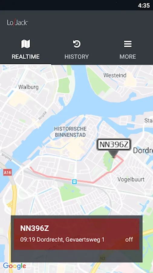Customers of LoJack Benelux with a LoJack Connect system can use this application to monitor all vehicles in real time and view the journey registration.