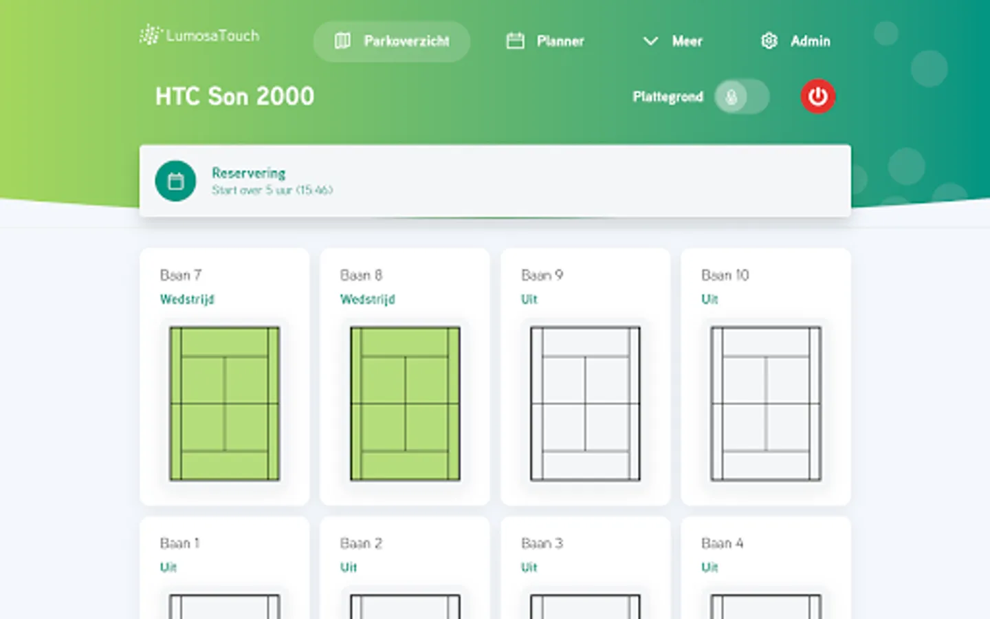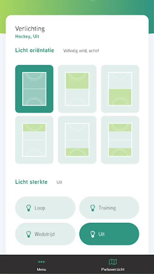 After starting up the LT application, you’ll find an overview from your entire sports park with the corresponding fields. You have the opportunity to control the lights from a specific field with simple icon-based actions. LT is the perfect complement to the Campo Sportivo LED lights, with the use of LT you can get the maximum out of the system!