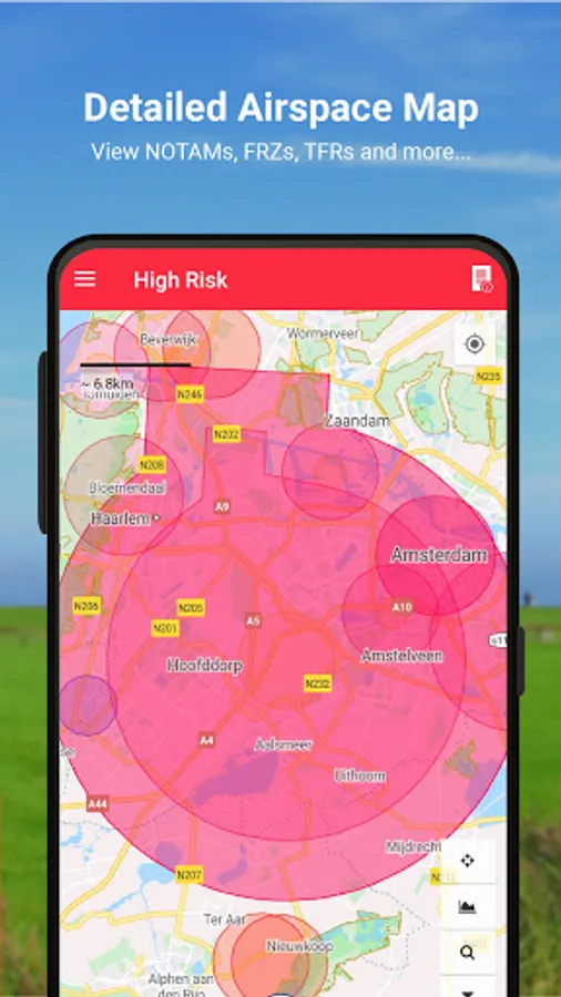 Please note that GoDrone app only provides airspace information for the Netherlands.