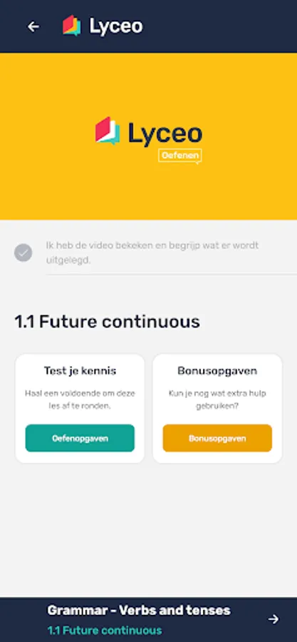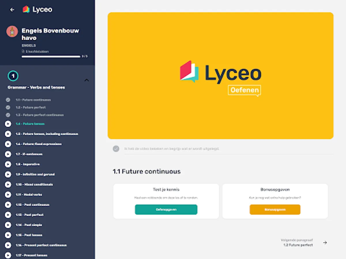 Part of Lyceo Practice is Exam Practice, especially for final exam students. This allows exam students to prepare online for the final exams with theory, explanation videos, practice assignments and a final test. Exam Practicing is available for all final exam subjects.