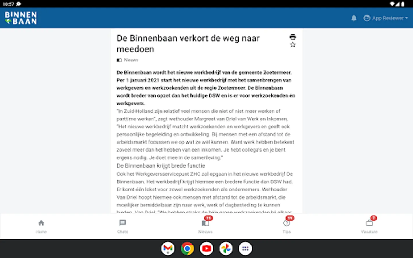 With the app you stay informed about the latest vacancies, but you are also offered information about, for example, workshops that are being organized. You can also send your coach an app message directly if you have any questions about anything.