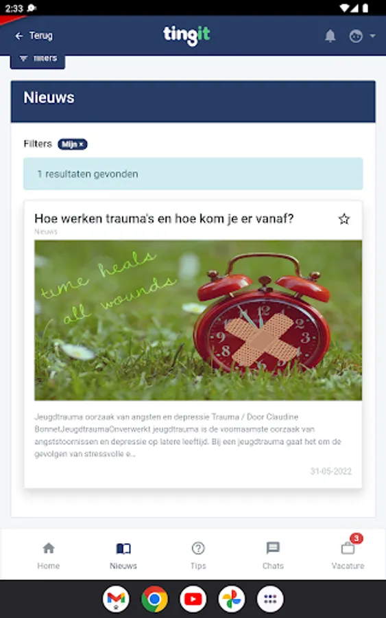 The Tingit platform has been developed to be used in the primary process: scalable, digital personal attention where possible, personal attention where necessary. Simple design and the option for pictures and videos help the vulnerable resident to find her way. Personalized content publications, such as news, tips, vacancies, exercises and events, automated appointments and programs ensure a personally relevant and therefore active client environment.