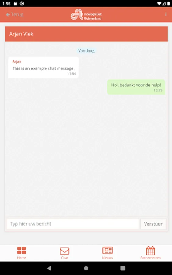 This app is completely free. Install the app and then log in with the username and password that you will receive via Indelogistiek Rivierenland.