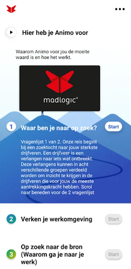 People who do their job because they are motivated are passionate employees. They enjoy their work more, are more creative, are less ill and can work better and longer. Animo can be used for change processes, job fit, increasing motivation and reducing drop-out. An organization with enthusiastic employees delivers better performance, fewer incidents and higher customer satisfaction. Despite the importance of motivation, employers often know little about employee motivation. Madlogic has developed a motivation management tool for this, a tool that measures personal motivation and helps to improve it.