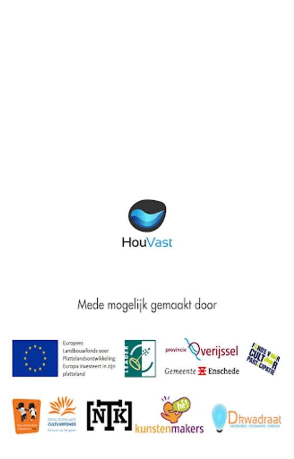 The app Houvast On Path is an initiative of Stichting Nieuwe Twente Arts and is supported by the following parties: Municipality of Enschede, province of Overijssel, LAG Leader / European Agricultural Fund for Rural Development Fund for Cultural, Fiep Westendorp Foundation, the Prince Bernhard Culture Overijssel.