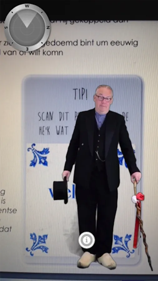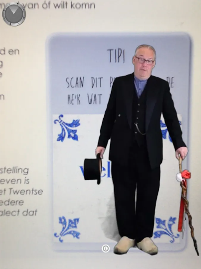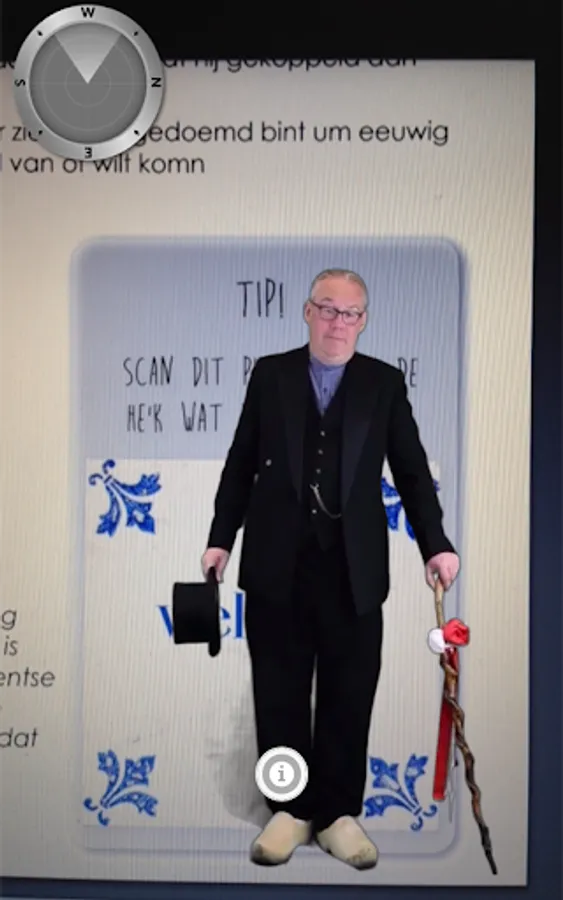 By using augmented reality (AR), the performance is enhanced with additional information such as images of the White Wiev'n and The Wild Hunt. Also, AR is used in the program. By focusing on an image (marker) example shows Laurens ten Den who told about the background of the story. And Jan Riese Wiek speaks, standing on the program, to the public.