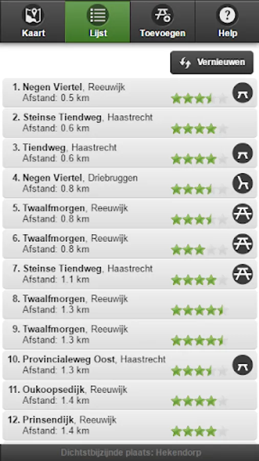 With the "alle bankjes" app, you can locate over 100.000 benches and pick-nick sites all over The Netherlands. You can use a map to get an overview of everything in your neighbourhood, or find the benches closest to you from a list.