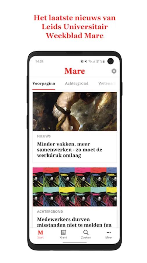 With the free app of Leiden University weekly magazine Mare you can follow the latest news about Leiden University and you can read the digital version of the paper newspaper that is published every Thursday. You can easily scroll through the different categories (news, background, science, student life, culture, columns & opinion) and in order not to miss anything you can set push messages for the topics you find interesting.