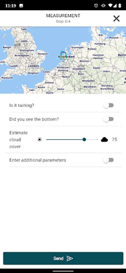 The EyeOnWater concept consists of an App and a website. The app allows you as user to make a contribution to science and supply information about the water colour of fresh- as well as saline waters (lakes, rivers, coastal waters, seas and oceans) near your location or elsewhere. The measurement is sent to the central server, validated and stored, after which it is visible via the EyeOnWater website: www.eyeonwater.org