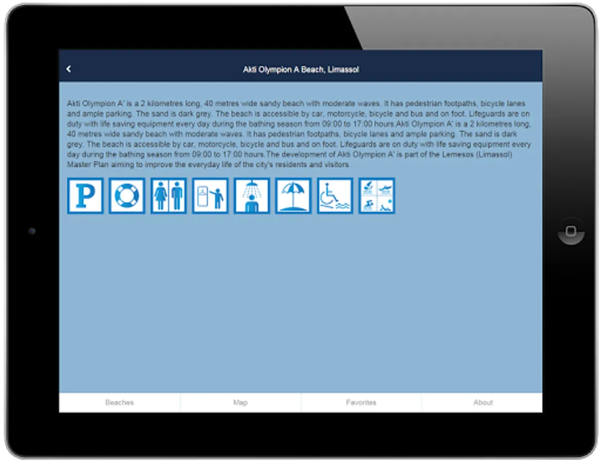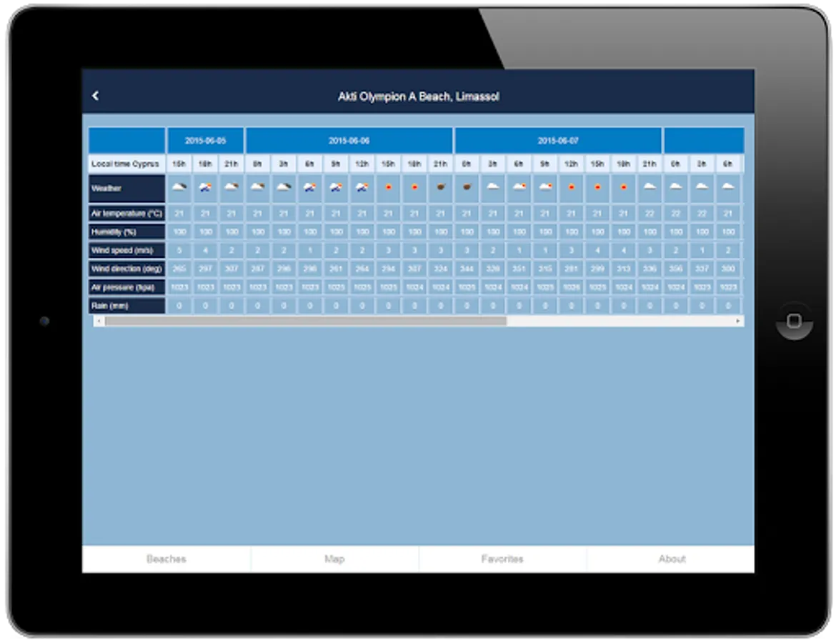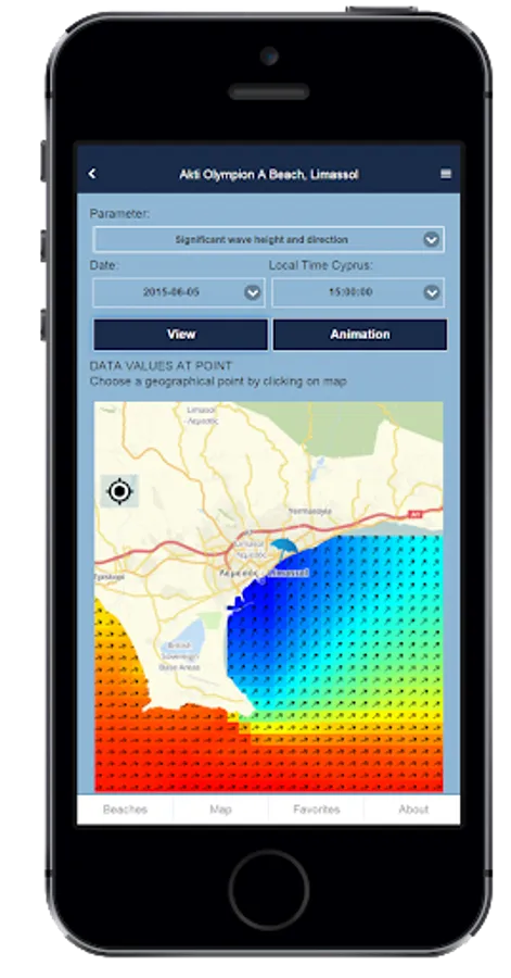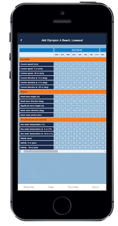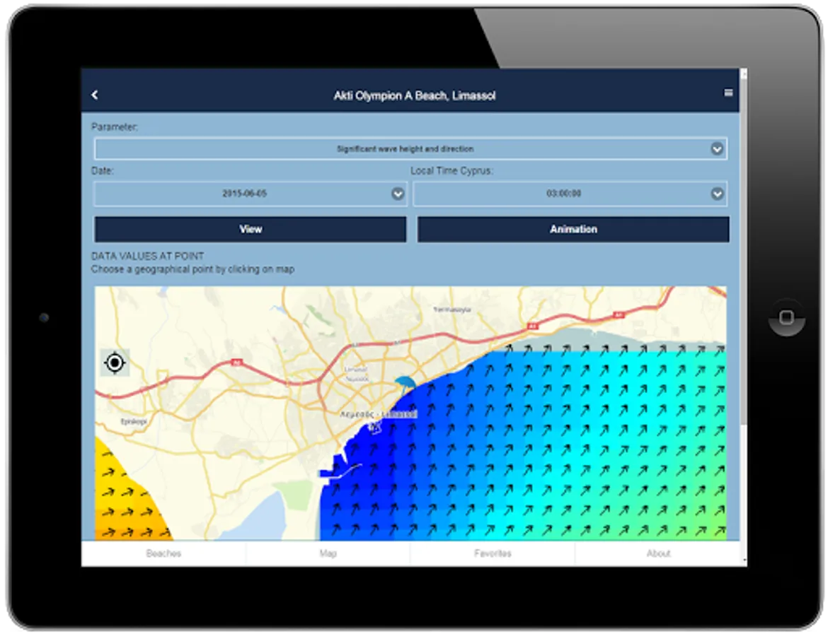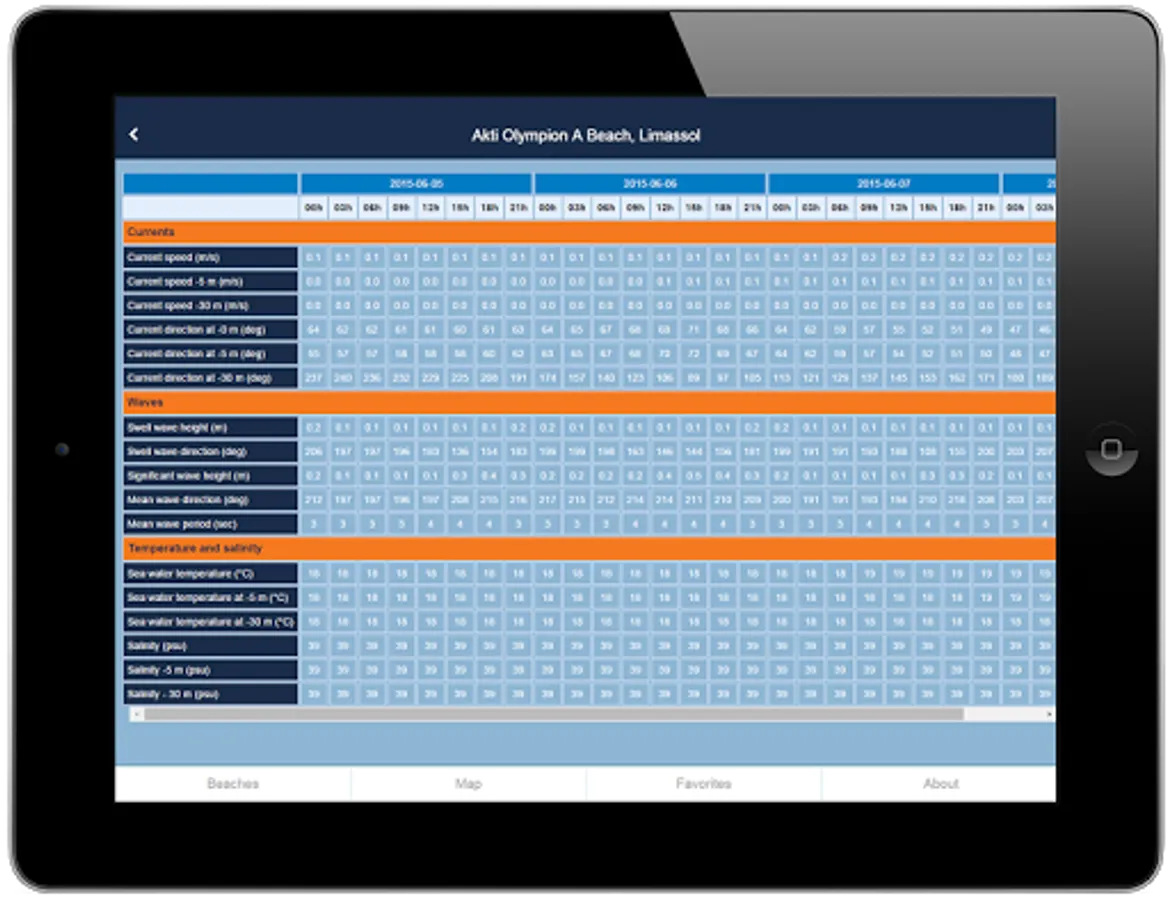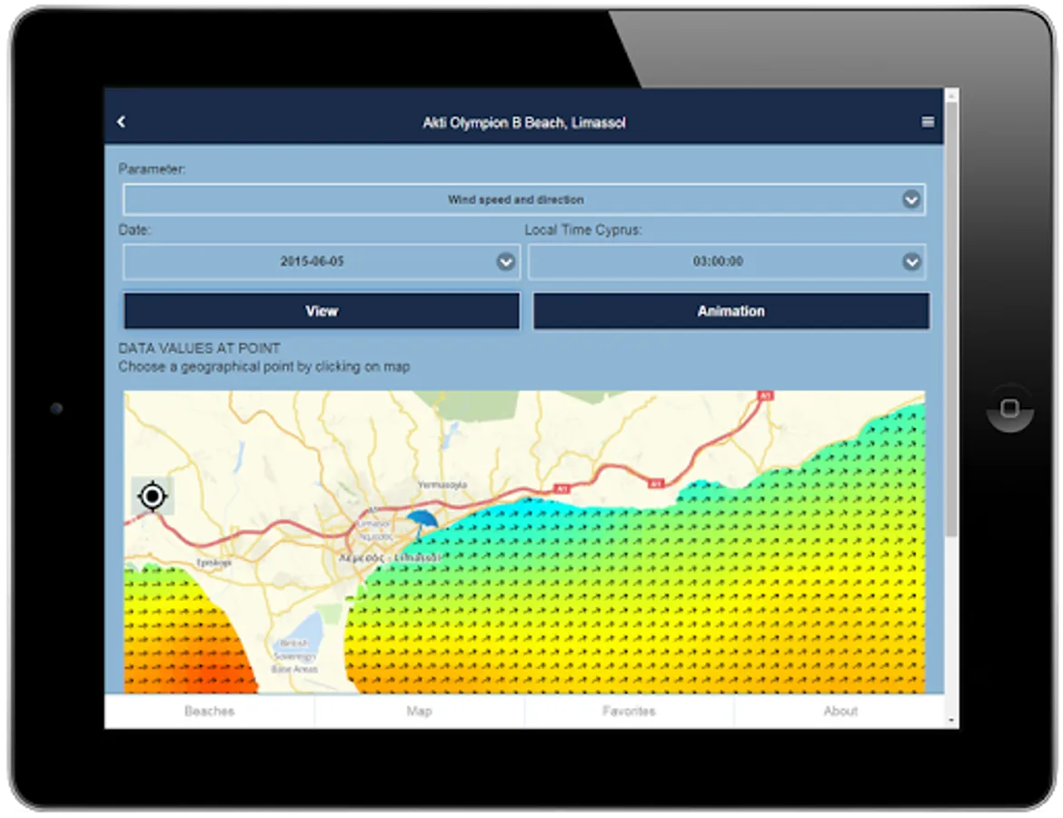 The SeaMobile App provides a handy and dynamic guide to the beaches and marine waters of Cyprus. It gives for each beach local information (description and features), marine forecasts (waves, currents, temperature, salinity and winds) and weather forecasts. This is provided in tables and maps, including animations.