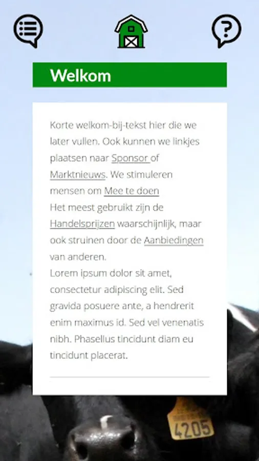 This app not only shows you the current trade prices on the most important livestock markets in the Netherlands, but we also offer a marketplace where we also connect the buyer and seller digitally. Within the app you can add offers yourself and respond to offers from others.