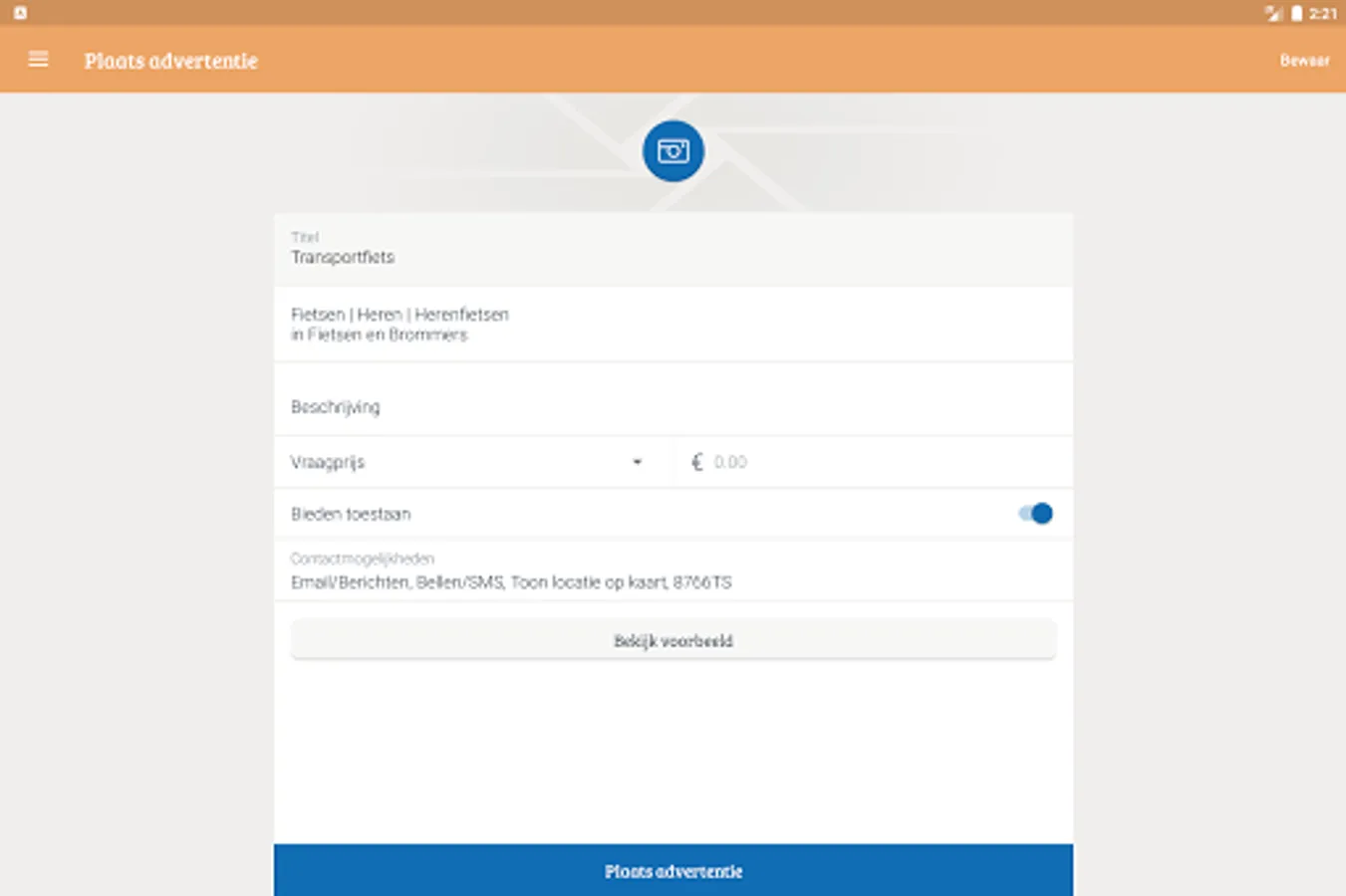 • View your ad and received bids in My Marktplaats synchronized between the app and the website
