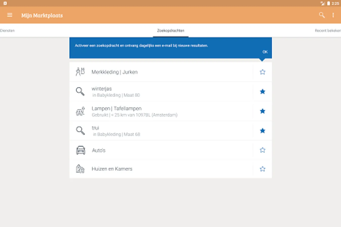 • Save ads to favorites in My Marktplaats and check them out later on your phone or desktop