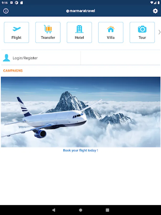 You can follow up-to-date flights using the Marmara Travel application. Economic flight tickets, advantageous hotels, transfer services and car rental are just a touch away.