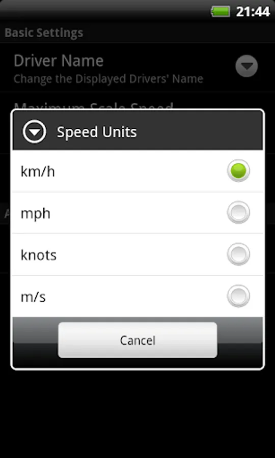 - Set the display speed units to: miles or kilometers per hour, knots or meter per second