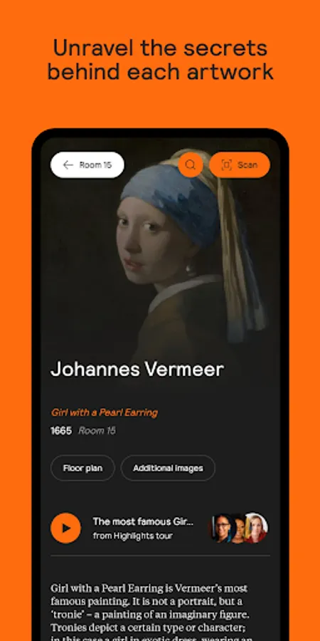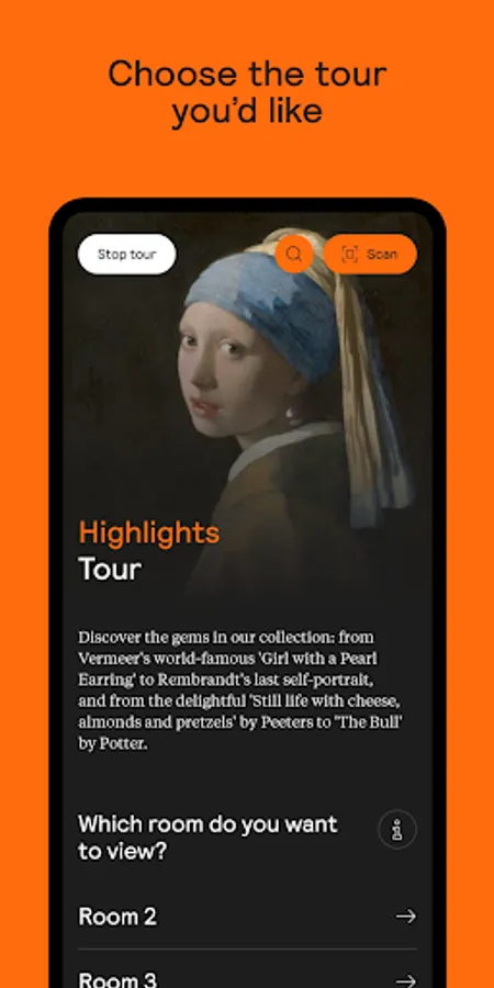 Download the free Mauritshuis app from Google Play at home, before your visit. That way, all you’ll need to do is open it in the museum. Don't forget to bring along your earbuds!