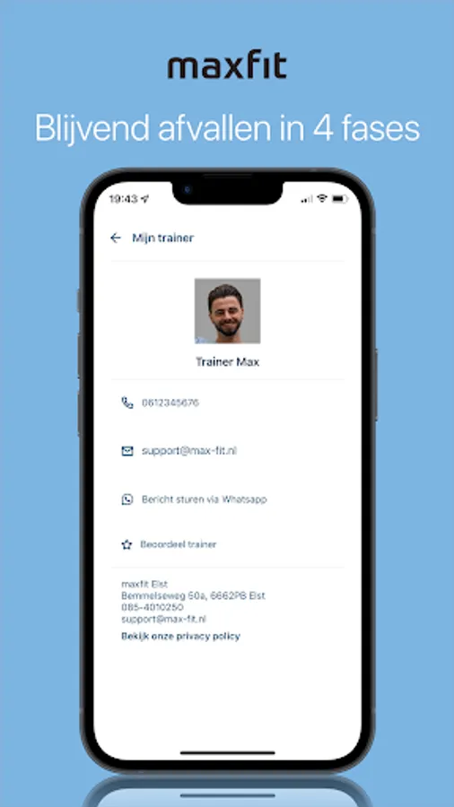 This application is the digitizing support for your body transformation within maxfit. With extensive insight into your progress and contact with your coach, you gain accurate insight into how your trajectory is progressing and your coach can switch quickly.