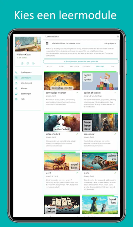 With Meester Klaas you learn spelling ✍️, verb spelling and parsing in Dutch! Do you now write a word with a v or an f? With an s or a z? You can learn how that works here. In all parts, attention is paid to enriching the vocabulary.
