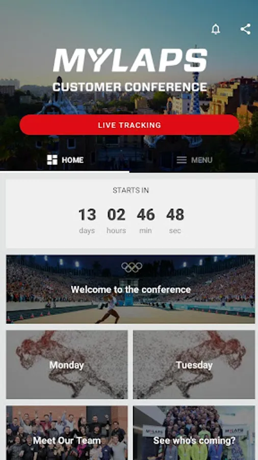The MYLAPS EMEA Customer Conference mobile app is the most complete app for the ultimate event experience. It features live tracking of all participants (without using their phones), social media integration, interactive course maps, selfies and all information you need to know about the MYLAPS EMEA Customer Conference.