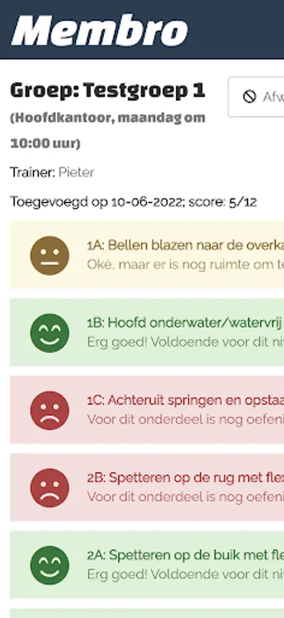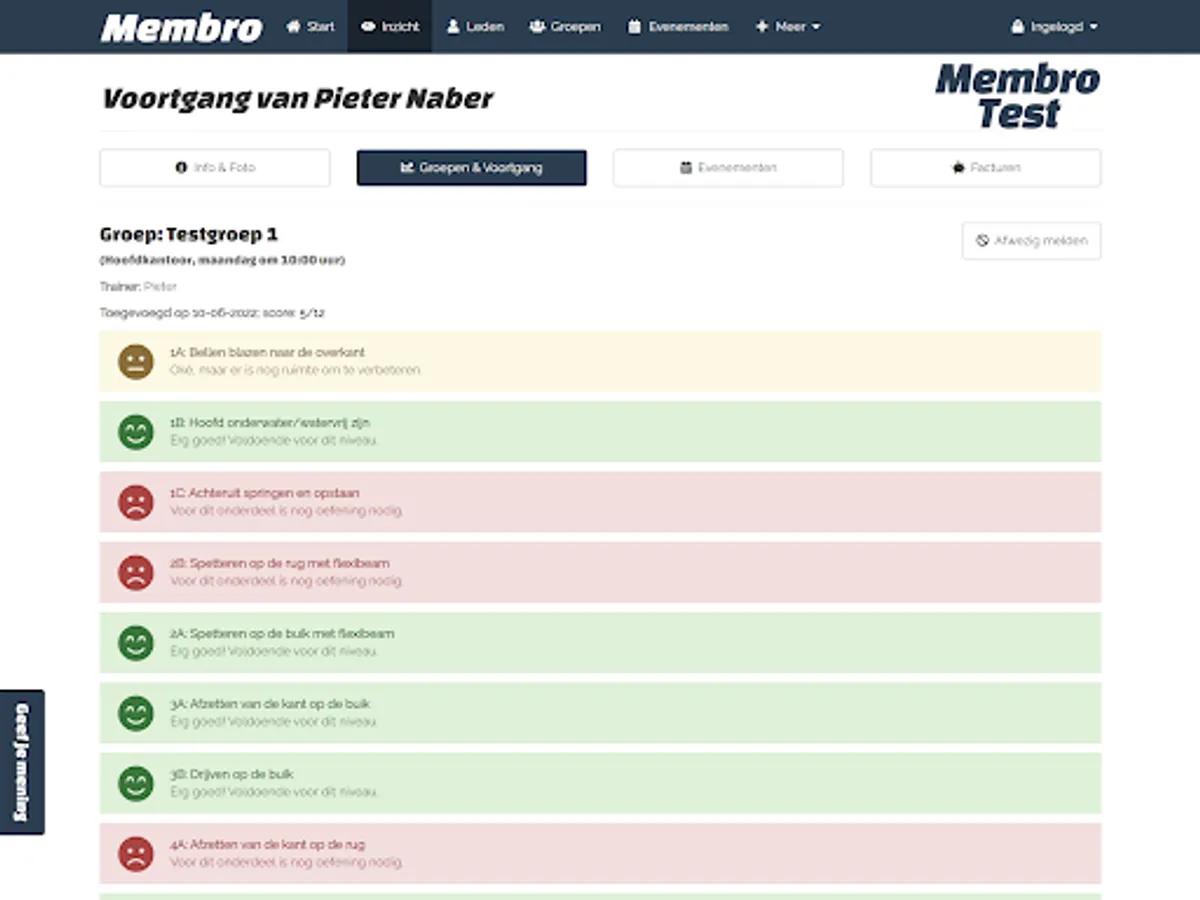 (Parents of) members can create an account and immediately see the progress of their children online in Membro. That saves a lot of phone calls and questions during your association evening!
