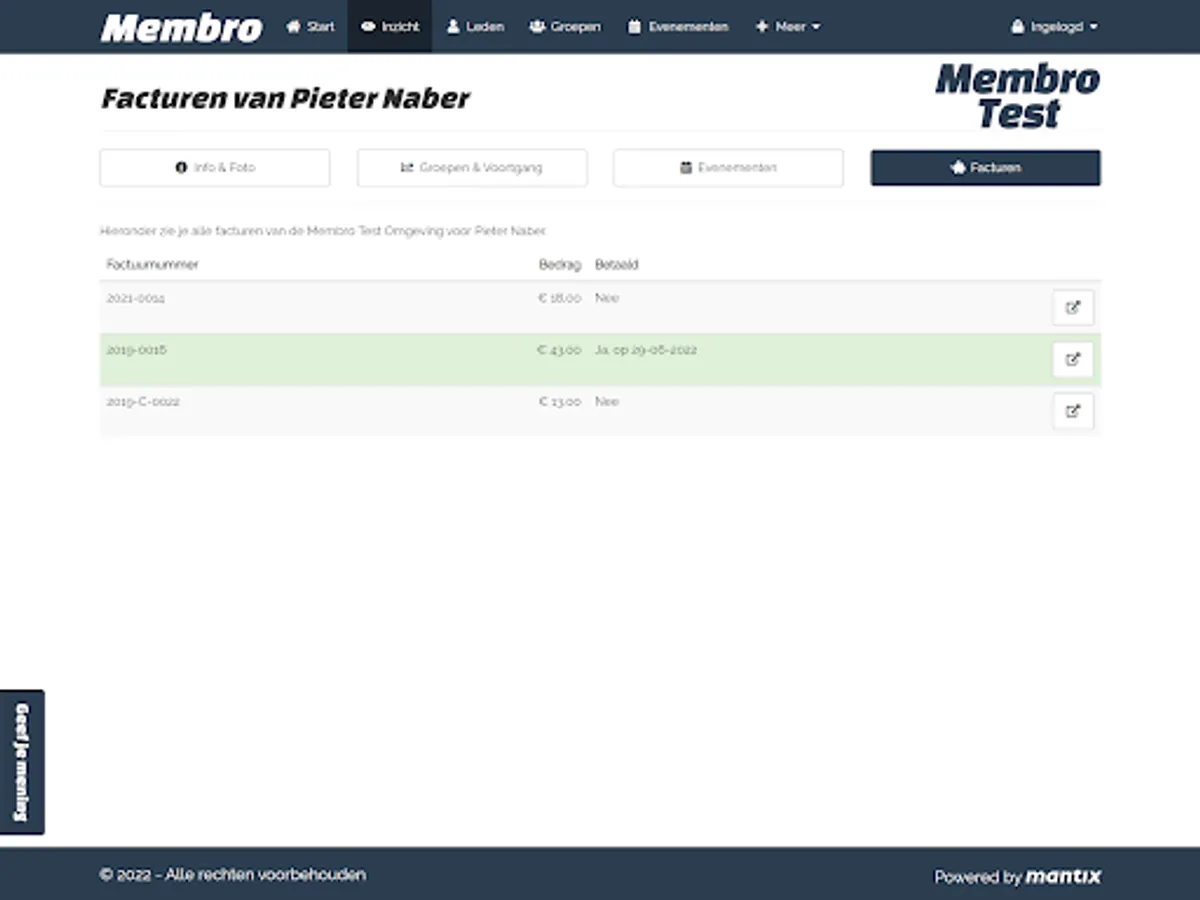 Of course, the membership administration also includes a financial administration. In Membro you create contribution invoices, which members can pay via direct debit, iDEAL or by scanning the invoice with their banking app.