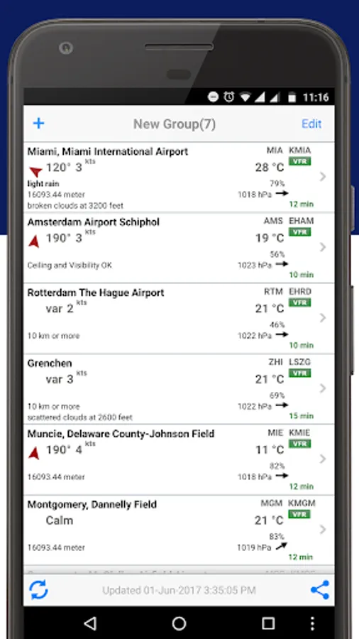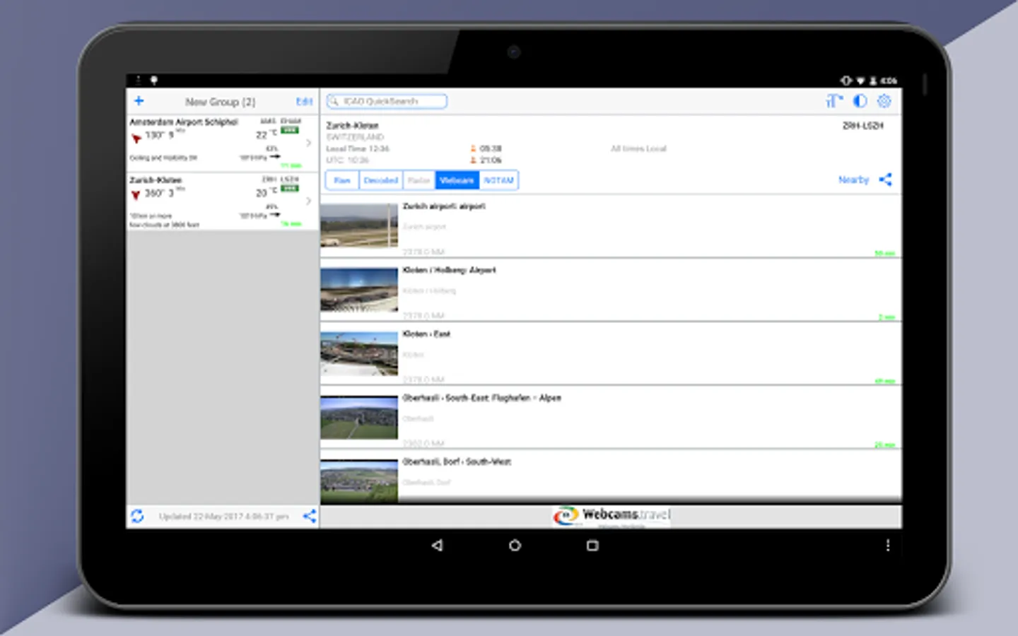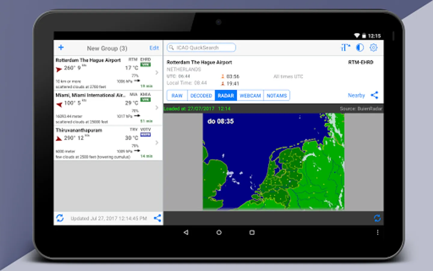 Get current and precise weather conditions (METAR) as well as weather forecasts (TAF), which are used by pilots for their flight preparations. You can choose worldwide airport weather stations from the built-in database by either name, ICAO or IATA code. Data will be shown in its original format or fully decoded into easy understandable texts.