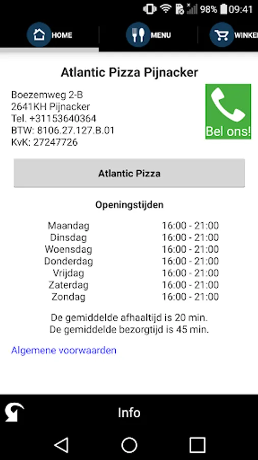 Welcome to the app of Atlantic Pizza. With our app you can: