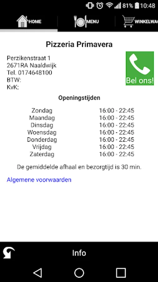 Welcome to the app Prima 2 pizza Naaldwijk. With our app you can: