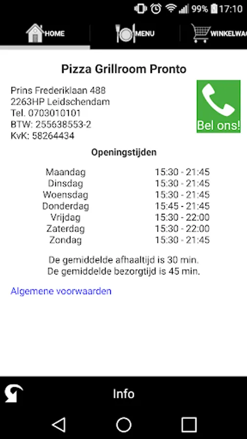 Welcome to the app Pizza Grillroom Pronto Leidschendam. With our app you can: