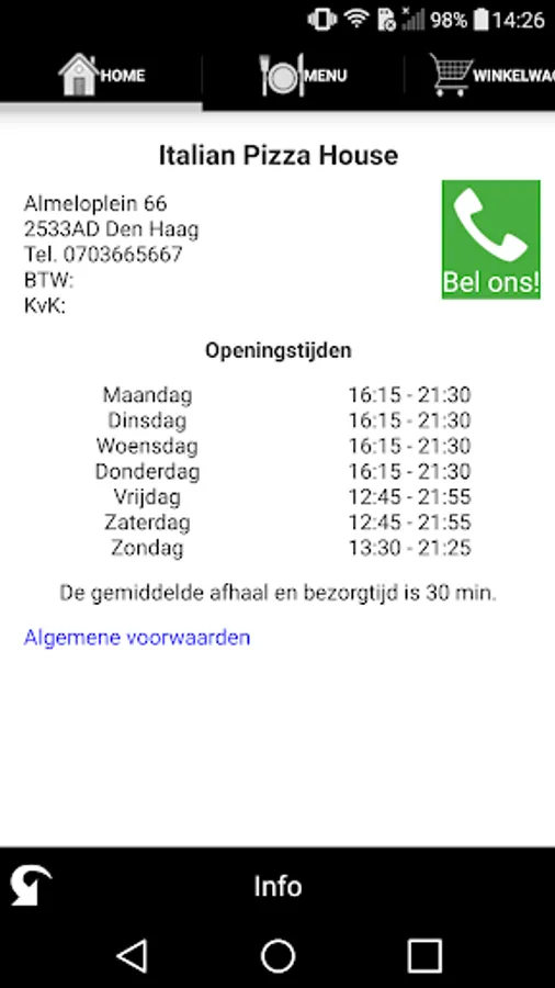 Welcome to the app of Italian Pizza House The Hague. With our app you can: