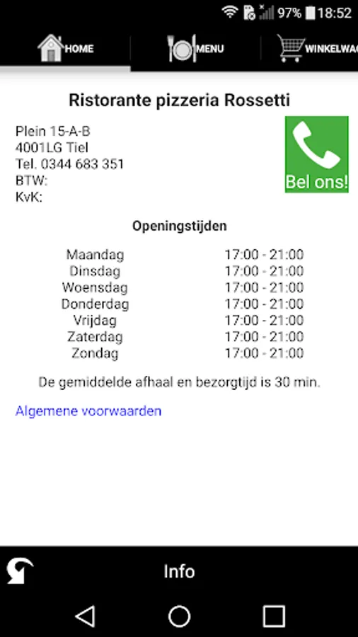 Welcome to the app of Ristorante pizzeria Rossetti Tiel. With our app you can: