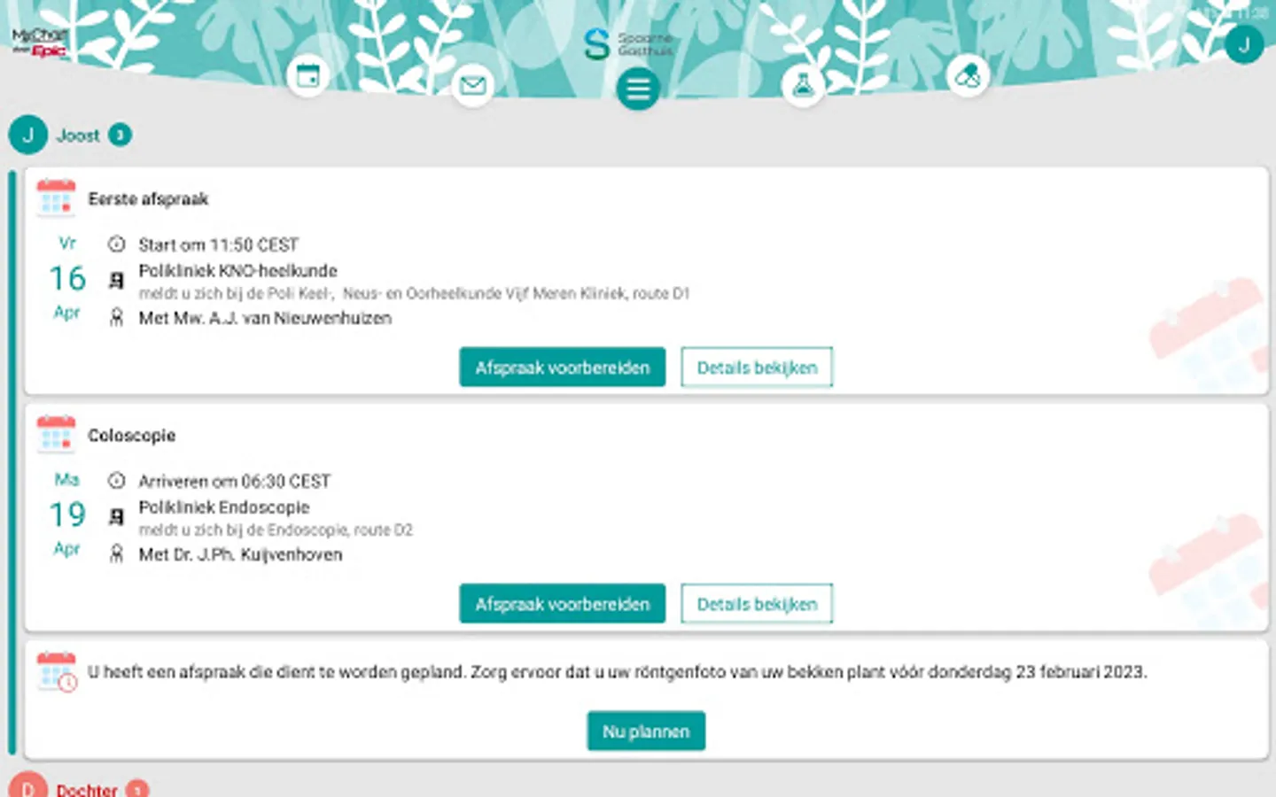Go to spaarnegasthuis.nl/mijn-spaarnegasthuis for more information about the functionalities of the patient portal.